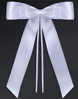 4 stk vita rosetter med självhäftande dubbelsidig tejp. Varje rosett mäter 14 cm på bredden. Använd dessa eleganta rosetter till att dekorera bil, handtag, stol, altargång, fönster, dörr och mycket mycket mer :)