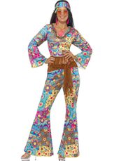 Gigantisk banner med en höjd på 74 cm och bredd på 220 cm. Bannern har ett stort motiv av blommor, fredstecken och texten; Peace. När du har dekorerat med denna vet alla var den bästa hippiefesten är.