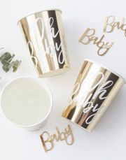 10 stk rose guldfärgade pappglasögon med Oh Baby text.
