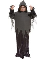 Maskeraddräkten består av en lång, vit kappa med fransiga kanter som svävar mystiskt runt barnet, och en huva som ger en lite kuslig känsla. Den svarta ansiktslösa huvan skapar en äkta spökeffekt, vilket gör det till en hit bland barnen. Tillverkad av bekvämt tyg, är denna maskeraddräkt både lätt och luftig, så barnet kan leka fritt hela dagen.
