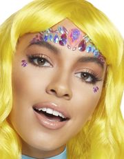 Set med Day of the Dead Calavera ansiktssmycken sammansatta av olika silverfärgade stenar. Ansikts-juvelerna har självhäftande tejp som gör det lätt att placera och ta av när kvällen är över. Använd ansiktsstenar ihop med din dräkt, till fest eller vardag - Stora beställningar