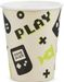 6 st muggar med "PLAY" och "GAME OVER"-motiv