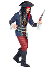 Arrrgh. Where's me bottle 'o rum?. Piratkostym bestående av skjorta m/Väst, byxa, skoöverdrag, huvudband, hatt och ögonlapp.