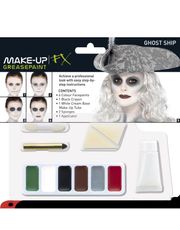 Komplett sminkset med sju delar för smink av sår, ärr, skador osv. I förpackningen får du med två olika svampar, tub med fake blod 36 ml, modelleringsvax 5,6 gram, spatula, sminkborste och palett med rosa, röd, brun svart och gul ansiktsfärg.