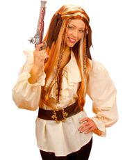 Krämvit off-shoulder piratblus med spetskanter vid ärmarna. Ihop med pirattopen följer också med ett svart magbälte. - Størrelsestabell Smiffys