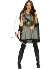 Var en riddares stora dröm i denna fina medeltidskostym. Medeltida damkostym bestående av röd sammetsklänning med långa vida ärmar och guldfärgad bård. Guldfärgat hårsmycke och rött bälte följer också med.