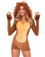 Brun kostymöverdel till flicka/pojke i plysch med svans och hätta med lejonhuvud. Stängs med blixtlås och har resår runt armarna. - Stora beställningar