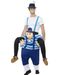 Oktoberfest piggyback pardräkt. Denna pardräkt kan användas av man-man, dam-dam eller dam-man. Själva dräkten är en byxa med fastsydd figur som ger illusion av att du blir buren på ryggen. Illusionen skapas av de falska benen som hänger på sidorna och ser