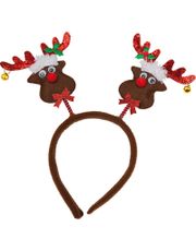 Kul hatt med renen Rudolf med röd näsa, ögon, öron, horn och benen hängande ned på siorna.