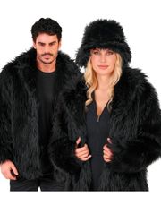 Denna röda plyschjackan är allt annat än diskret – och det är just poängen. Med sitt fluffiga, mjuka material och knallröda färg är detta plagg gjort för att synas, vare sig det är på fest, karneval, temakväll eller när du bara vill skruva upp stilen helt.