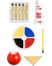 Sminkset med 8 sminkfärger, 8 sminkpaletter och en pensel. Dessa färger gör att du i alla fall kan bli sju olika karaktarer; spöke, häxa, djävul, vampyr, spindel, varulv, skelett och fler. Vill du ha andra färger än de du får här, har vi ett stort utbud - Stora beställningar