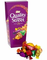 750 gram olika Quality Street-choklad och karameller från Nestle. Dessa kommer i en härlig plåtlåda innehållande 11 olika varianter och smaker, så det kommer med största sannolikhet att finnas något du gillar däri ;)
