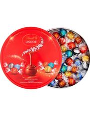 Upplev lycka med detta sortiment av Lindt Lindor Smooth Melting Milk Chocolate, Vit Choklad, Extra Mörk Choklad och Hasselnötschokladtryffel.