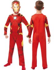 Superman inspirerad barnkostym bestående av dräkt med polstrad bröstkorg, röd kappa och bälte.