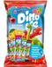 10 st Dino Ice Pops – Saftis med fruktjuice och smakerna apelsin, tropisk frukt, jordgubb och hallon.