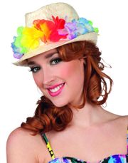 Vit fedorahatt med stjärnor och 60-tal i silver dekorerad över hela hatten och ett svart band med 60-tal och stjärnor i guld.